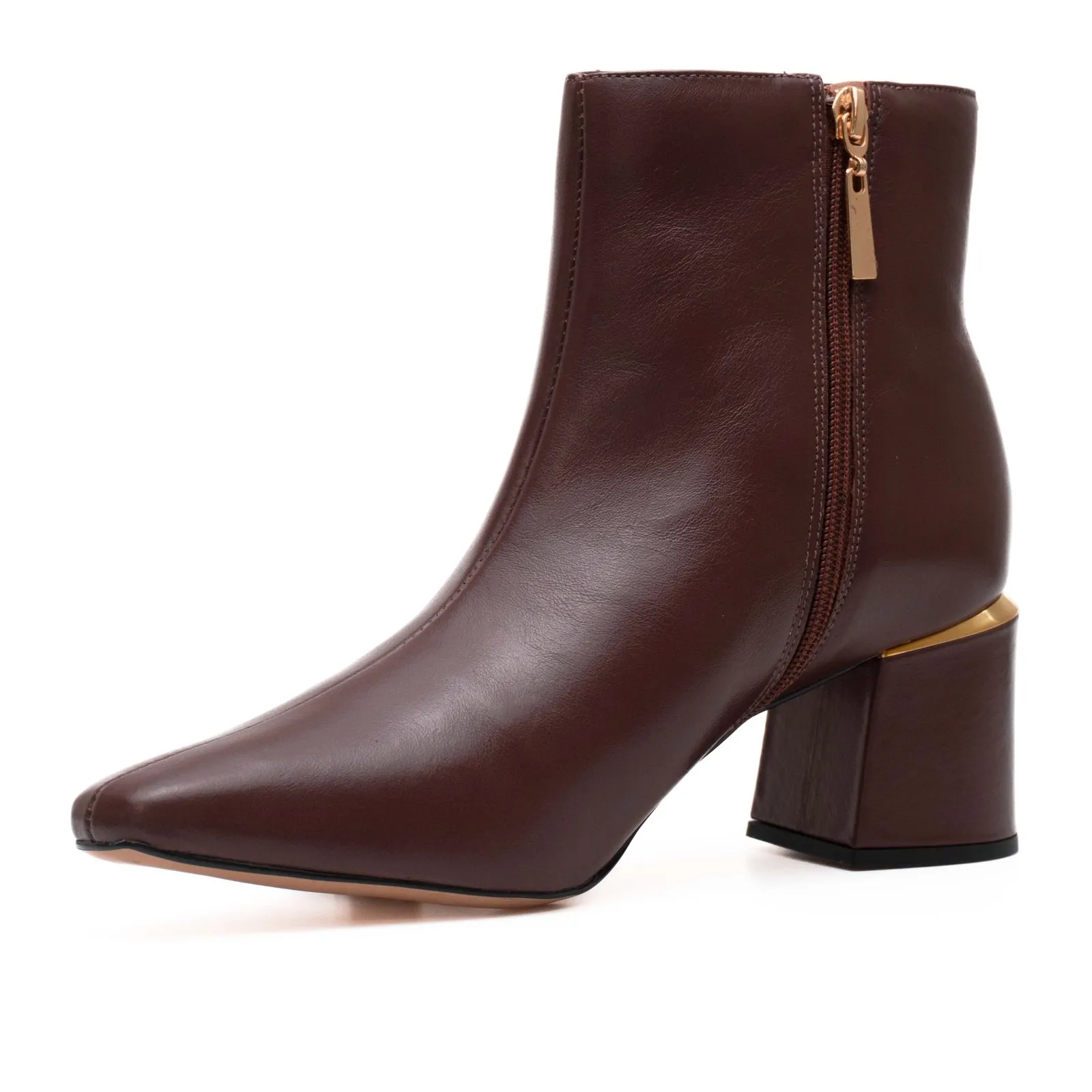 Para quem busca um toque moderno e sofisticado, a bota Lucinda de cano curto é a escolha ideal. Seu design minimalista com bico levemente quadrado e salto bloco na altura de 6cm traz elegância e conforto para qualquer ocasião. O detalhe metalizado no salto adiciona um charme extra. O fechamento lateral em zíper garante praticidade e um calce rápido.