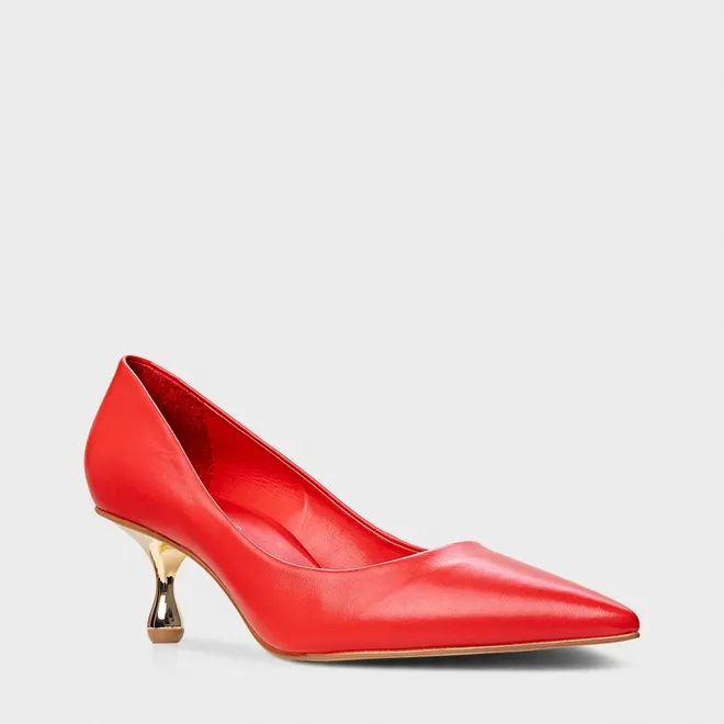 Scarpin de couro. O modelo possui um salto gota, super moderno e icônico. Acompanha a anatomia do pé, prezando pelo conforto e estabilidade na hora do calce. FEITO EM COURO LEGÍTIMO.