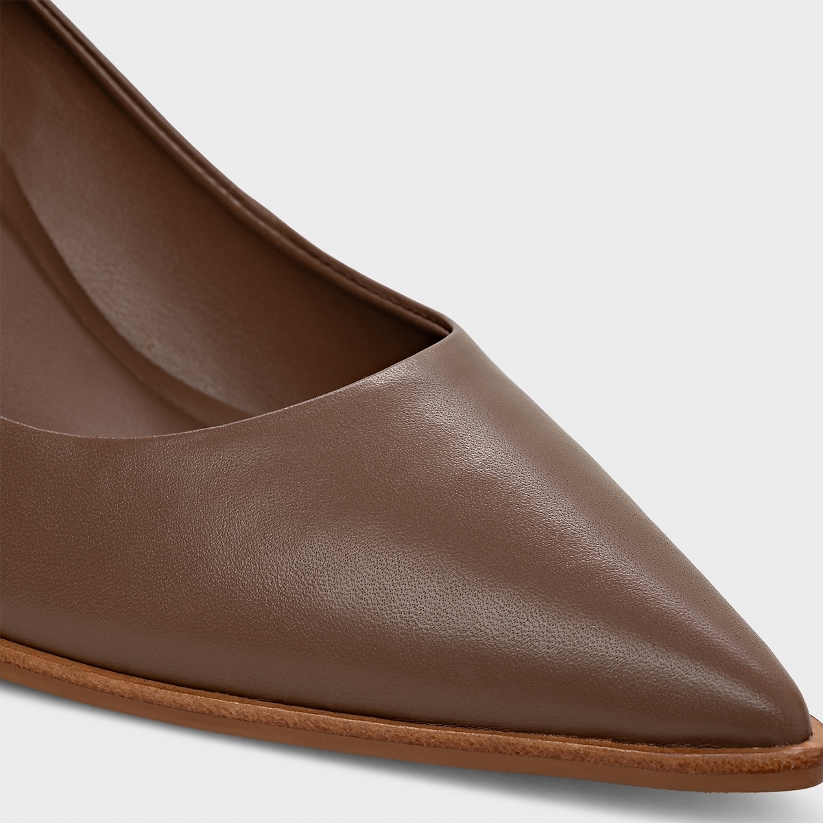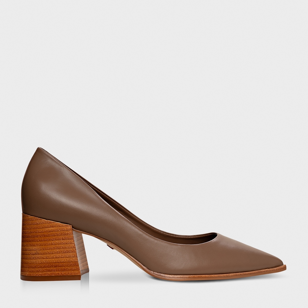 Scarpin de couro. O modelo de salto bloco de madeira 6,2cm e bico fino. Acompanha a anatomia do pé, prezando pelo conforto e estabilidade na hora do calce.