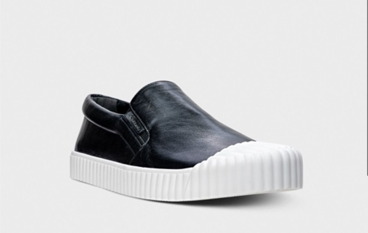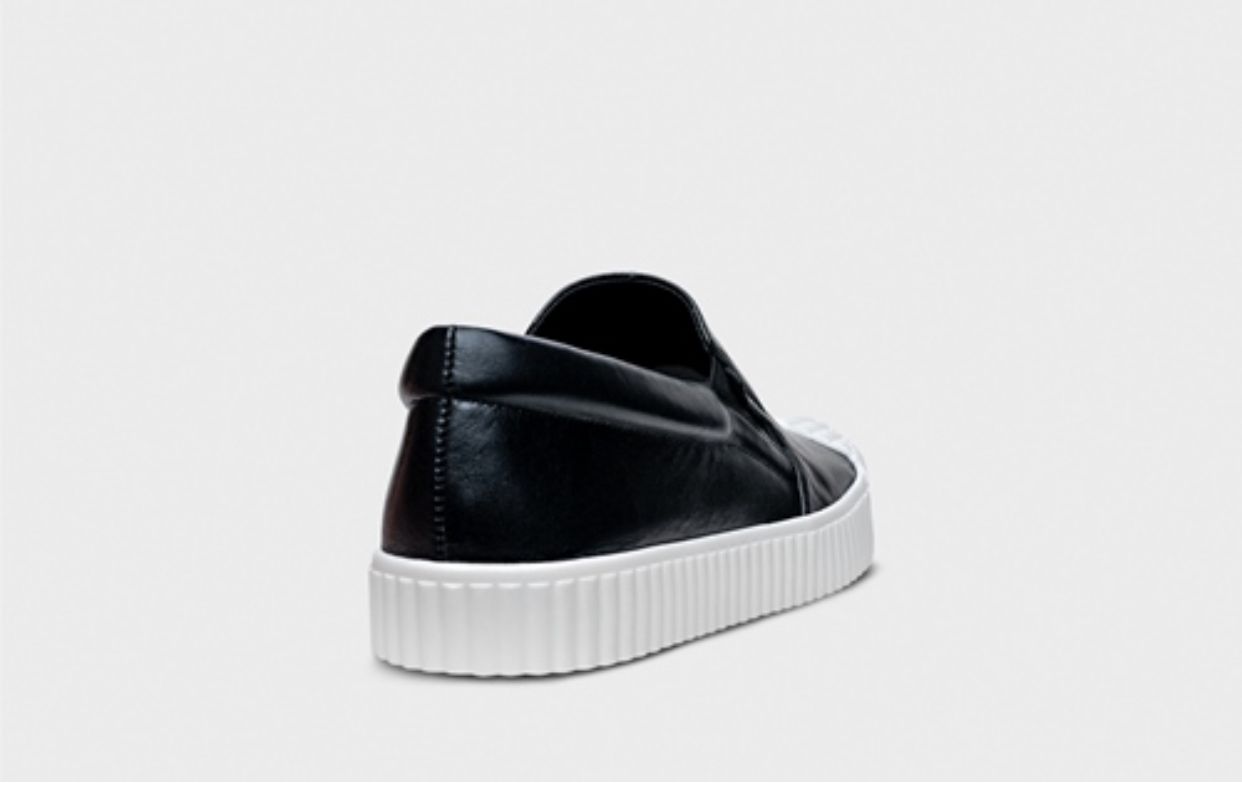 Tênis slip on de couro. Possui solado baixo branco flatform e bico arredondado. Fechamento em cadarço. FEITO EM COURO LEGÍTIMO.